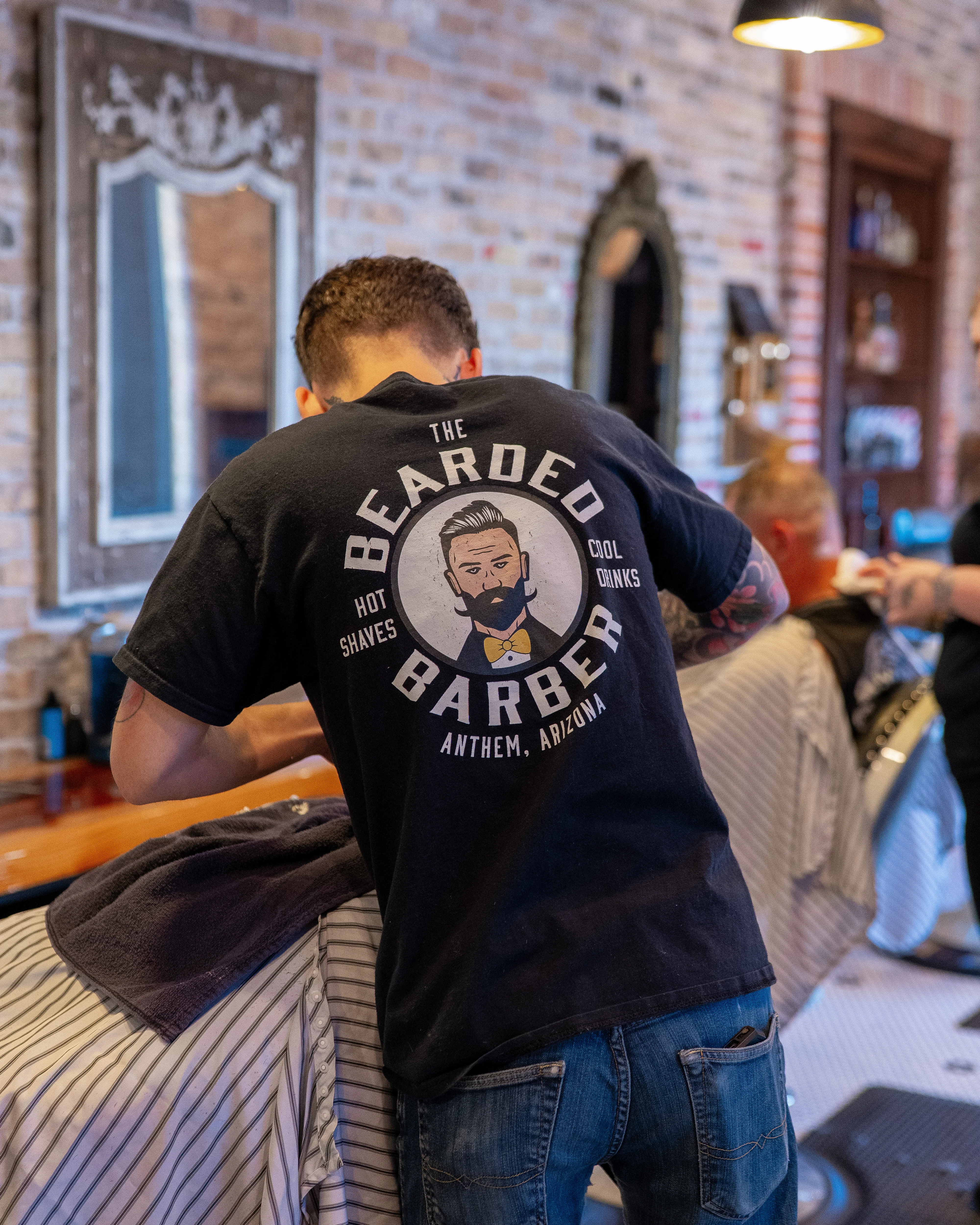 The Bearded Barber is hiring a team to offer North Phoenix a full service grooming shop, and with a cocktail. This 1920’s prohibition style Speakeasy, bar and restaurant, is accessed through the bookcase in the barbershop.