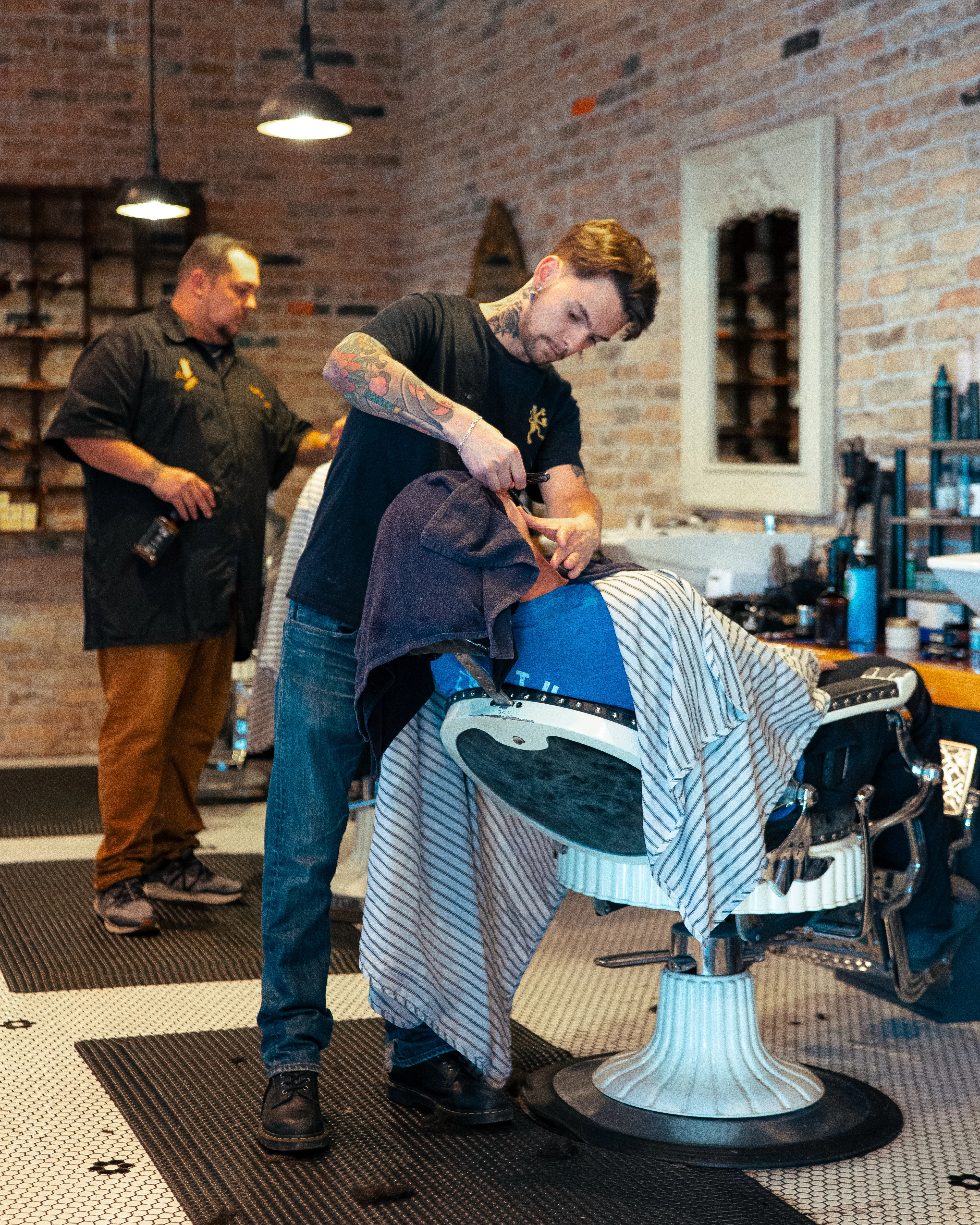 So grab a seat, sip on a mocktail (complimentary for members), and let our skilled artisans treat you to a grooming experience that effortlessly blends the charm of the past with the expertise of the present. Welcome to the era of dapper decadense, where every haircut is an event to remember!